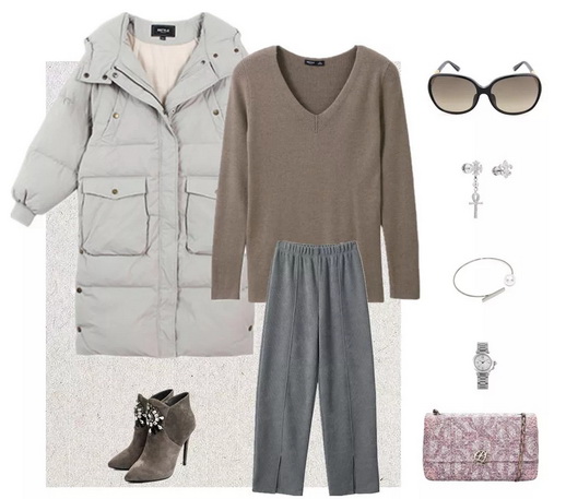 针织衫(去购买)、休闲裤(去购买)、外套(去购买)、高跟鞋(新加坡品牌CHARLES & KEITH)