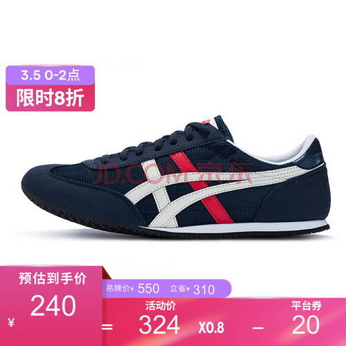 【再省286.44元,累计评价9000+。5号活动价324元,plus会员95折,0-2点8折,(首页领取店铺券)领券每满200-20元,使用满1000-200元分享券,合理凑单,可低至44折142.56元】MACHU RACER系列以经典慢跑鞋为原型,增添潮流复古元素设计,简洁明朗,融合运动与时尚。中底EⅥA材质弹性好,缓震效果良好。经典宽大鞋舌配备防偏移设计,提升包裹性,穿着舒适。Onitsuka tiger的橡胶大底,耐磨防滑性能良好。虎爪造型的LOGO,鞋身稳定包裹系统,支撑鞋身。前脚部大底的上翘设计,符合人体工程设计。